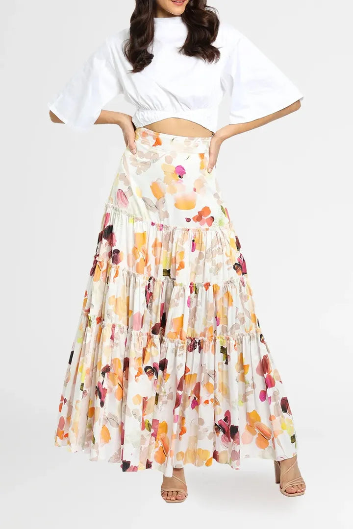 The Dassia Skirt by Aje is truly one of a kind. Featuring a dreamy floral print, this high-waisted, tiered maxi skirt is both feminine and striking. With its full, flowing silhouette and versatile design, it’s the perfect piece to rent for any occasion- in any season.