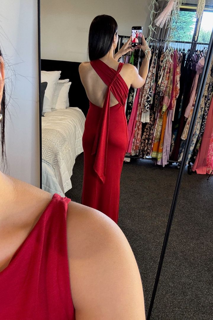 The Catelyn Asym Maxi Dress is crafted from premium scuba jersey for a structured yet comfortable fit. Designed with a sleeveless silhouette, flattering round neckline, and bodycon shape to enhance your curves, it’s finished with an open back and a softly rouched sash detail that creates an eye-catching asymmetric hemline. Fully lined for a smooth, refined finish- perfect for evening events, cocktail parties, or an elevated night out.