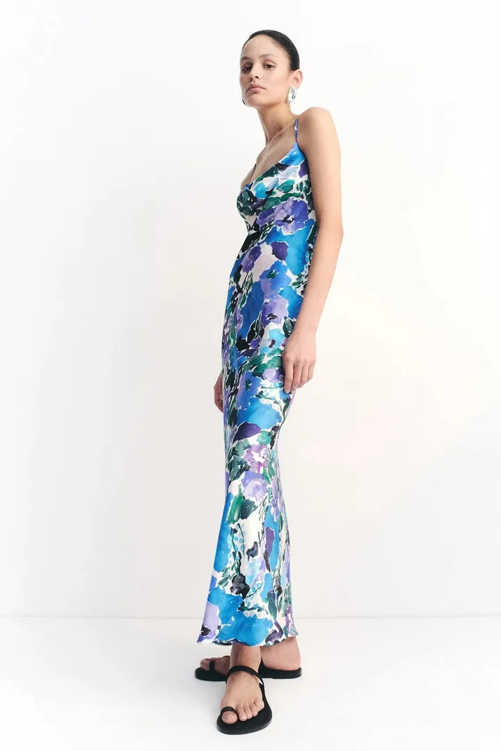 Turn heads in this stunning maxi dress, showcasing the romantic Curlewis floral print and crafted with a luxurious matte silk-touch finish. Featuring a flattering cowl neckline and an elegant low back with adjustable cross-back straps, it’s the perfect choice for weddings, events, or a standout evening look.